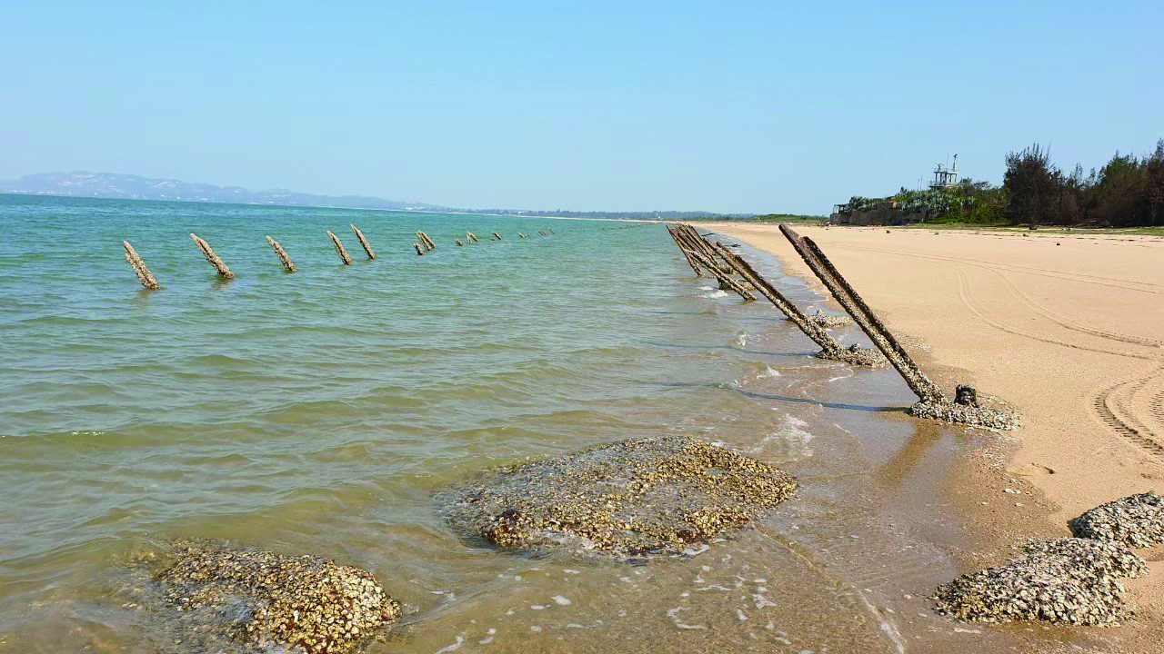 反登陸樁又稱軌條砦,是將台灣廢棄的鐵軌裁成一點五至兩公尺,前頭削尖,成排斜插在沙灘上,以防止敵軍船隻靠近的防禦設施。目前在金門各處的沙灘,幾乎都可以看到。